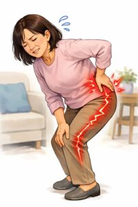 - 朝起きたら、腰が痛くて憂鬱になる。
